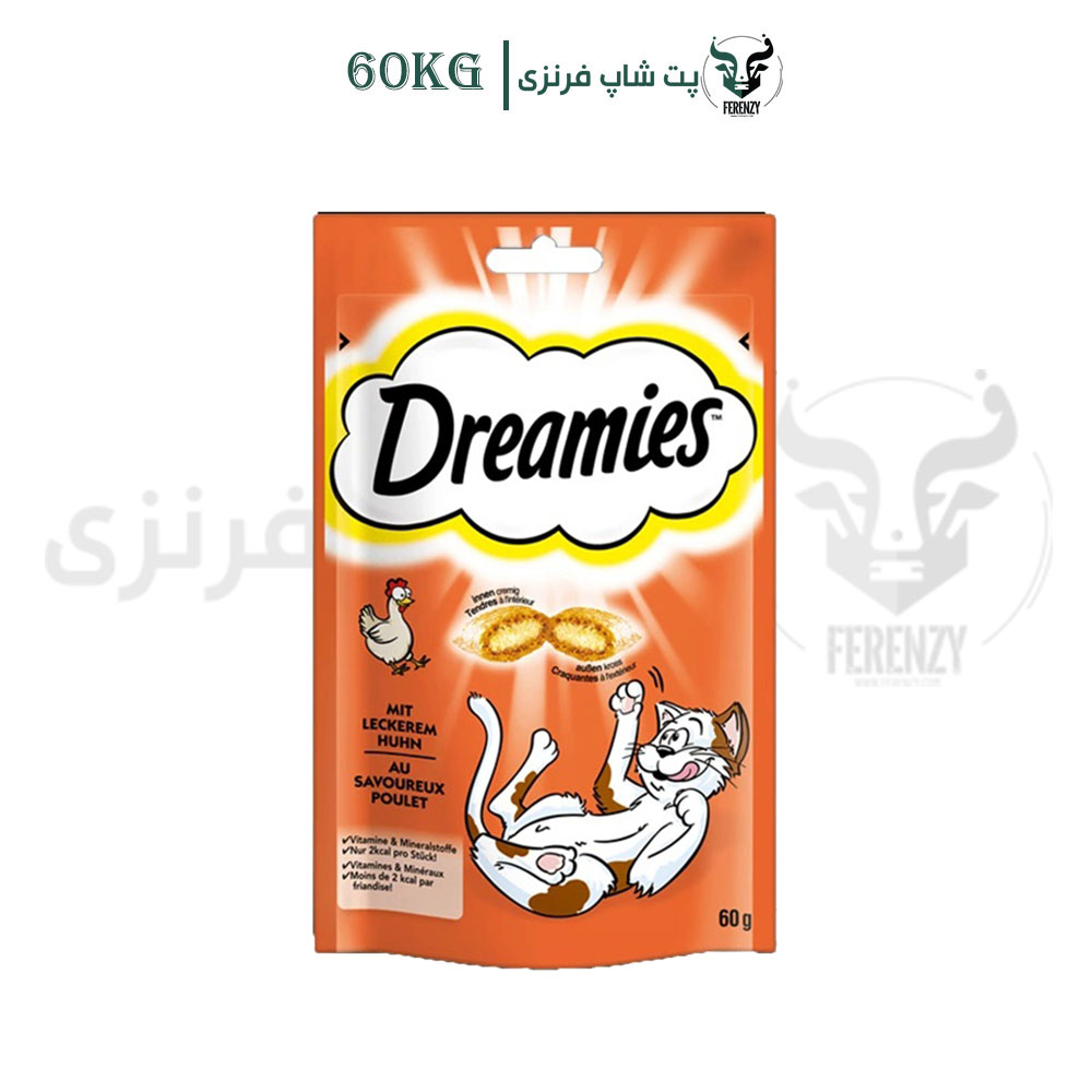 تشویقی گربه دریمز Dreamies طعم مرغ وزن 60 گرم