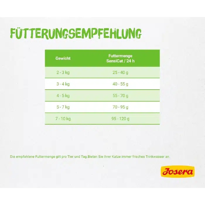 Josera Sensicat انتخابی ایدهآل برای صاحبان گربهای است که به دنبال غذایی ایمن، خوشخوراک و سازگار با معده حساس هستند؛ غذایی که بدون ایجاد حساسیت، انرژی روزانه و سلامت عمومی گربه را حفظ میکند.
